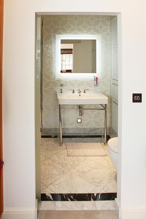 The Bathroom walls were finished with Bisazza Tiles & floors in Carrera marble.